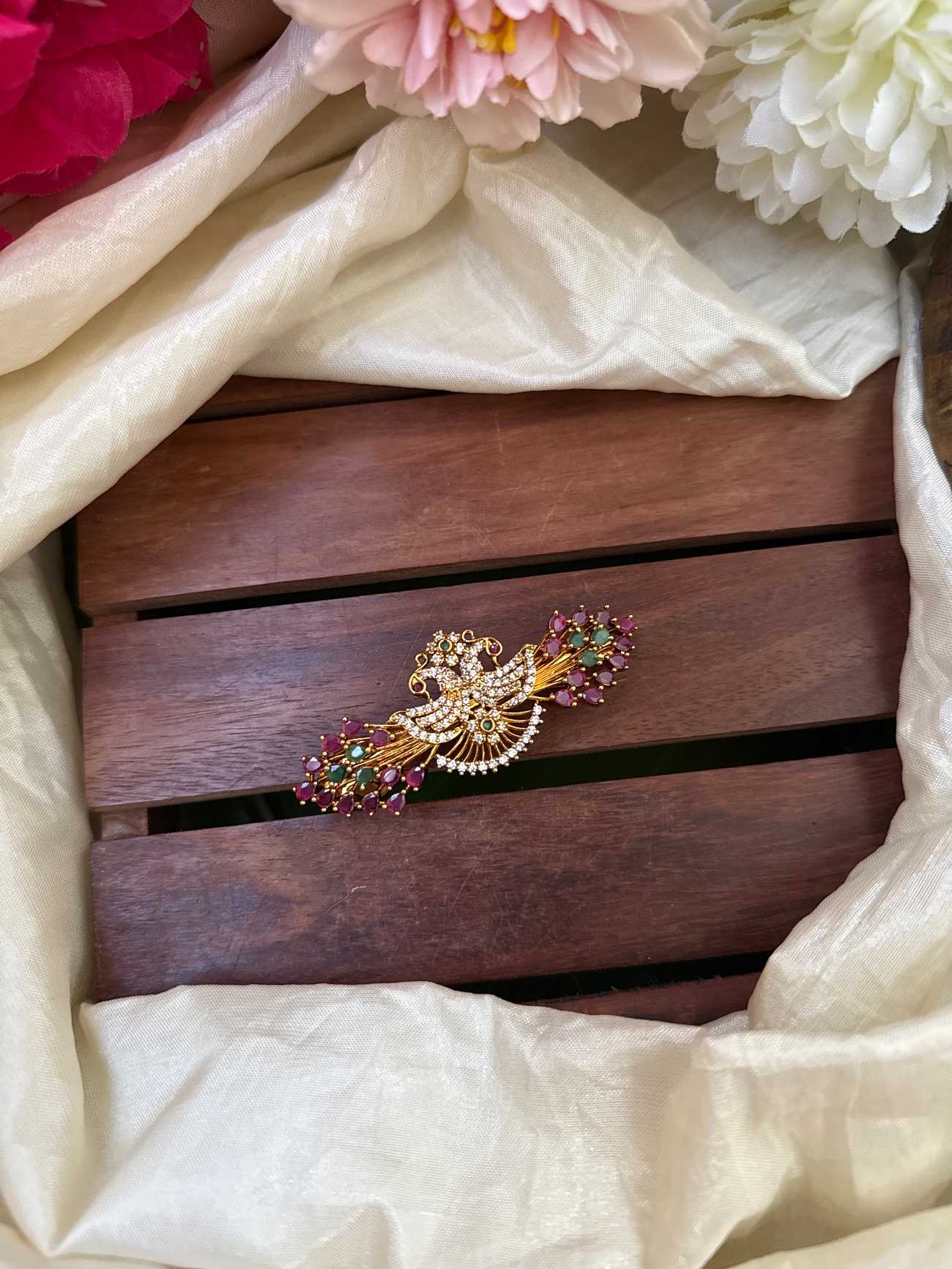 Availability: In StockDesigner Peacock with AD Stone Ruby and Green Centre Clip
