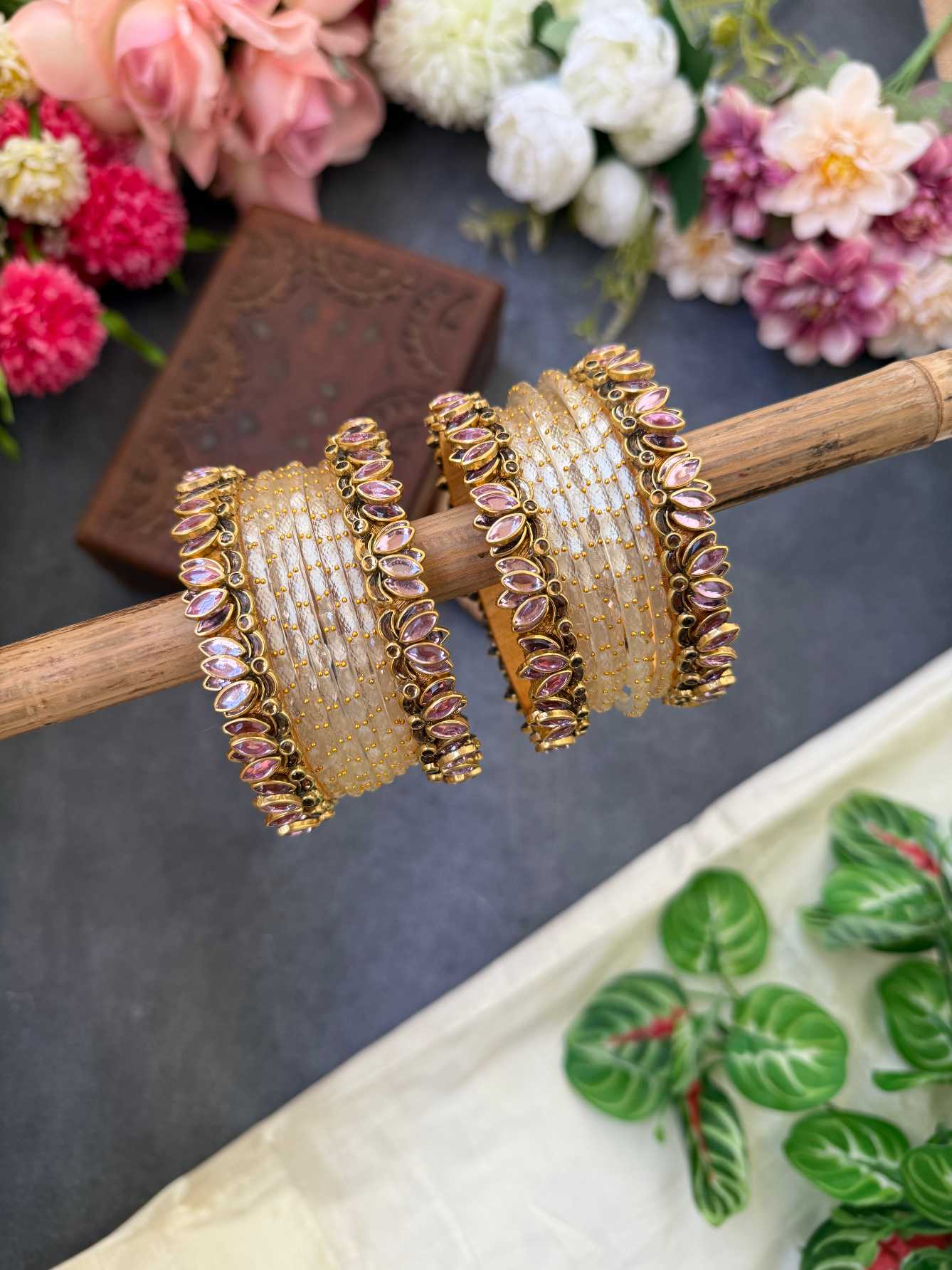 Lotus Baby Pink bangles with Off White Glass Bangles – BC516