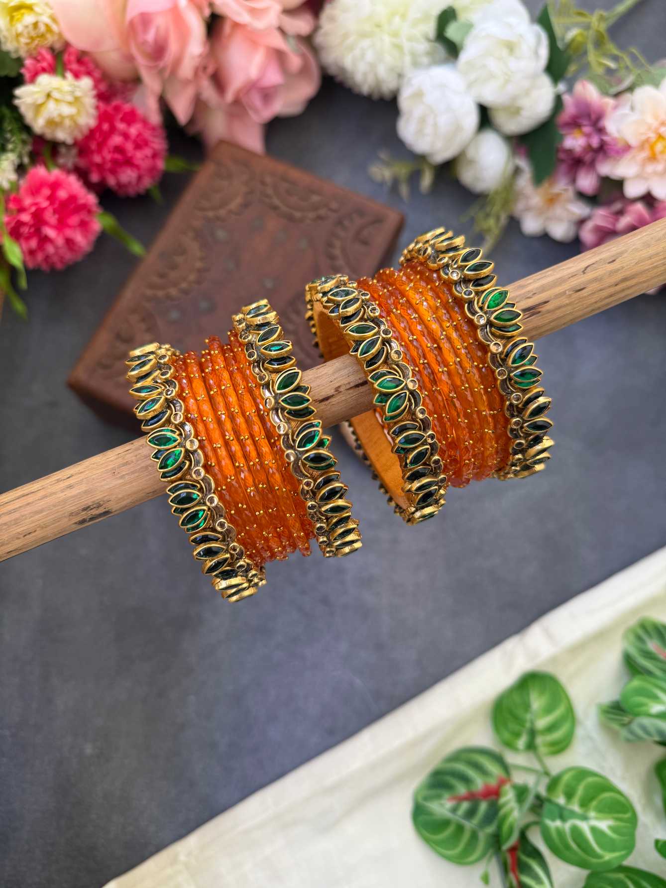 Lotus Dark Green bangles with Orange Glass Bangles – BC557