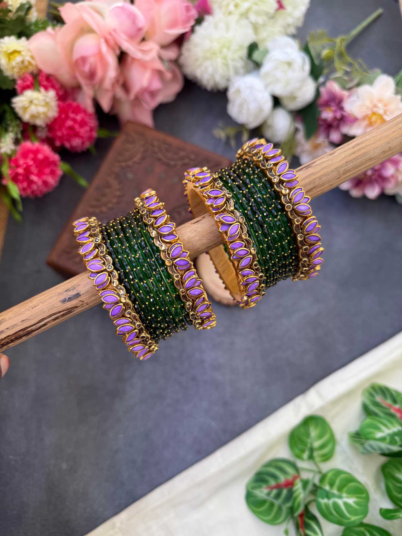 Lotus Lavender bangles with Dark Green Glass Bangles – BC556
