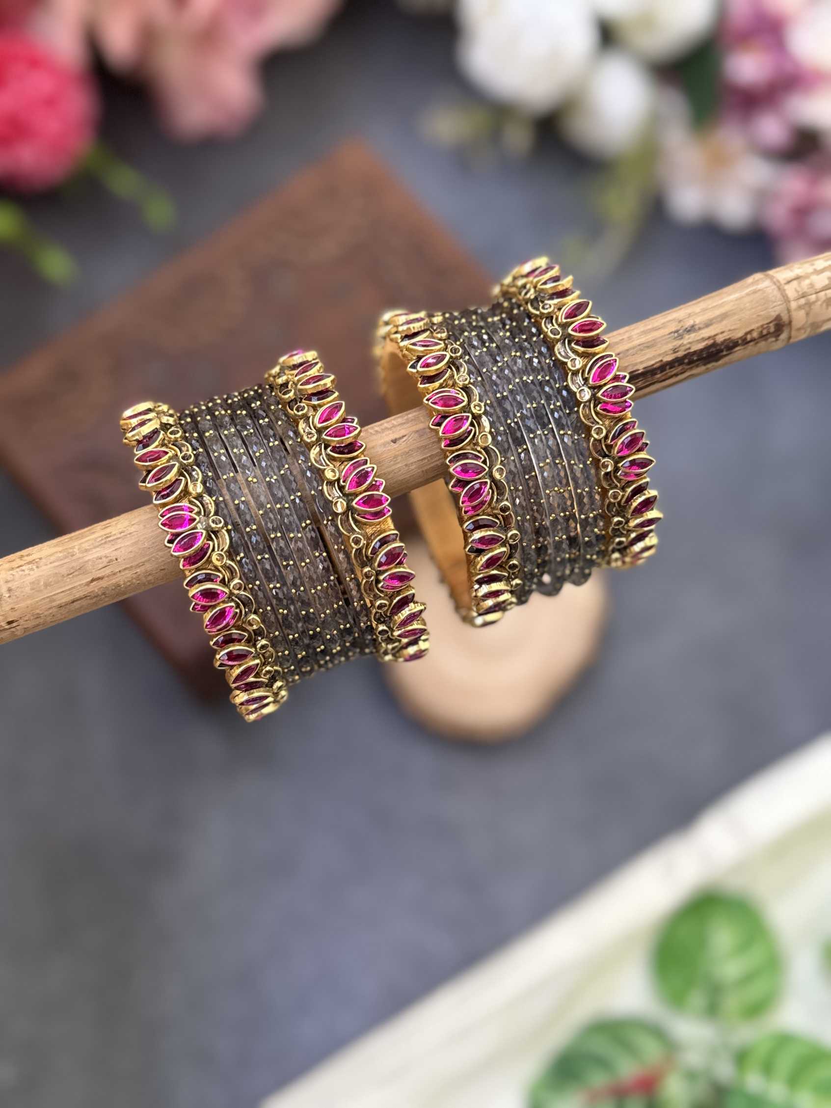 Be the first to review “Lotus Pink bangles with Grey Glass Bangles – BC487”