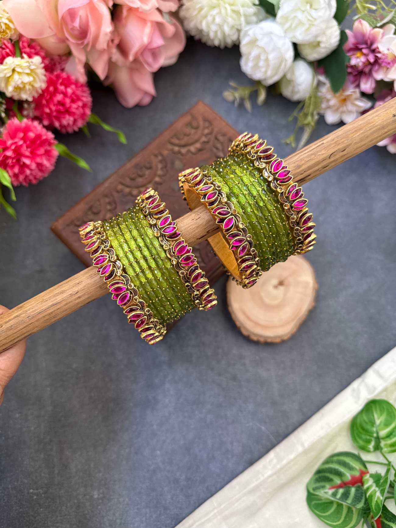 Lotus Pink bangles with Parrot Green Glass Bangles – BC500