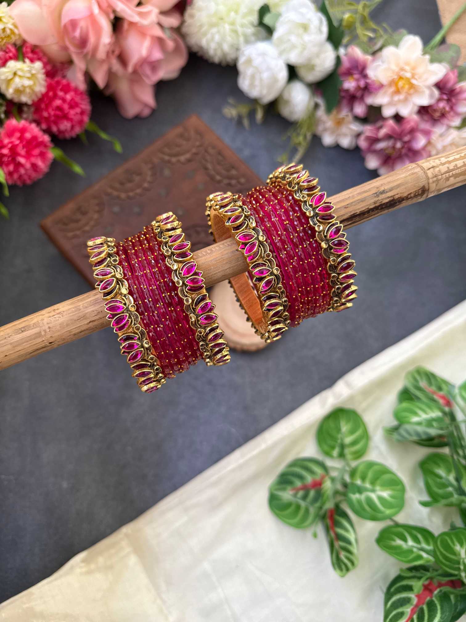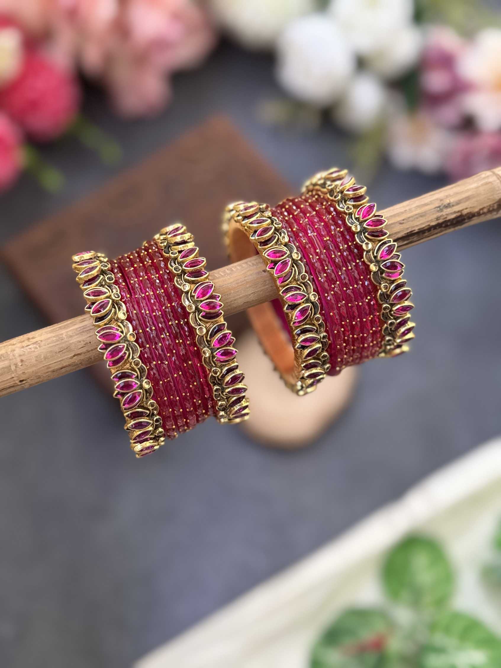 Lotus Pink bangles with Rani Pink Glass Bangles – BC493