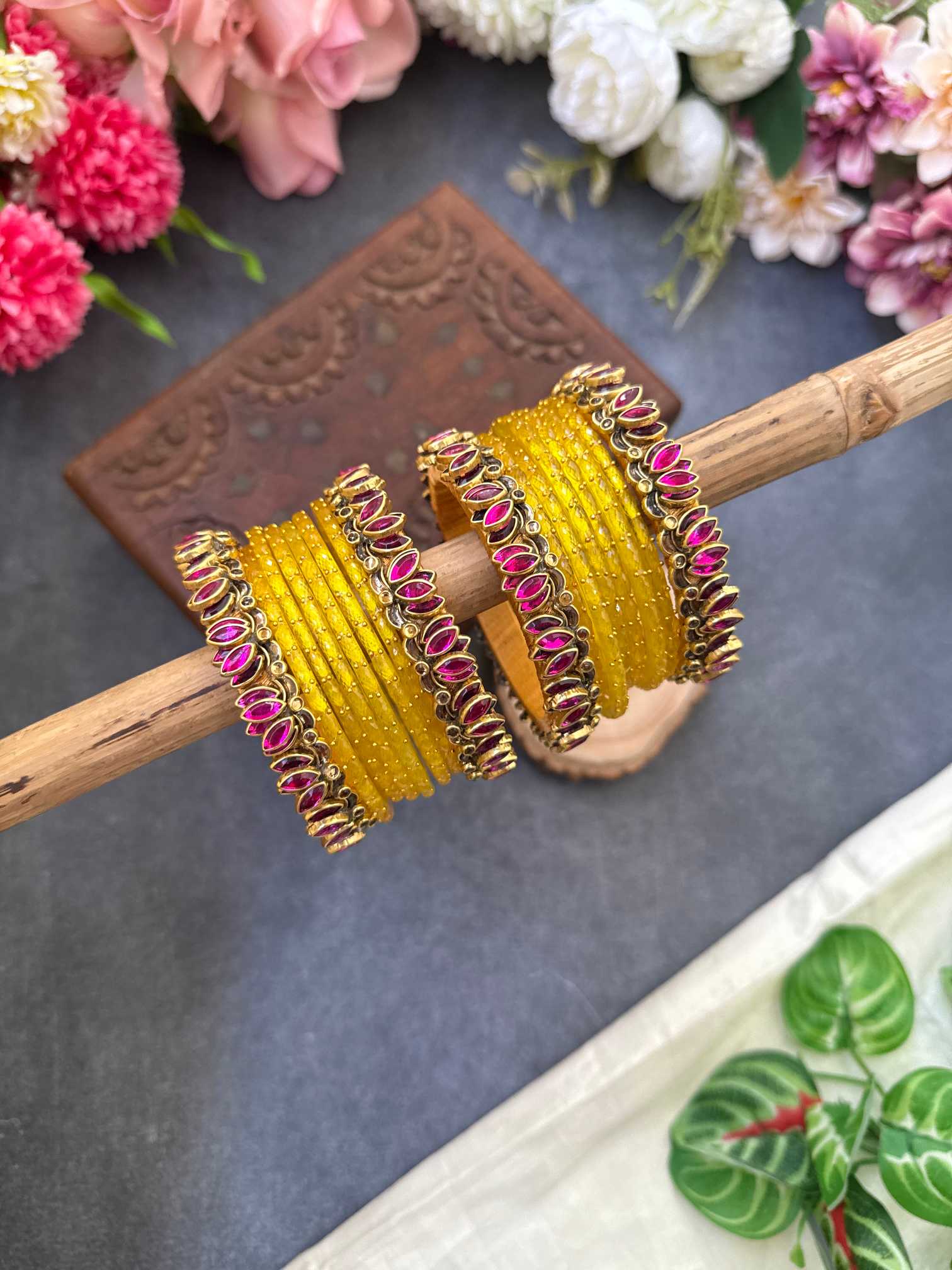 Lotus Pink bangles with Yellow Glass Bangles – BC501
