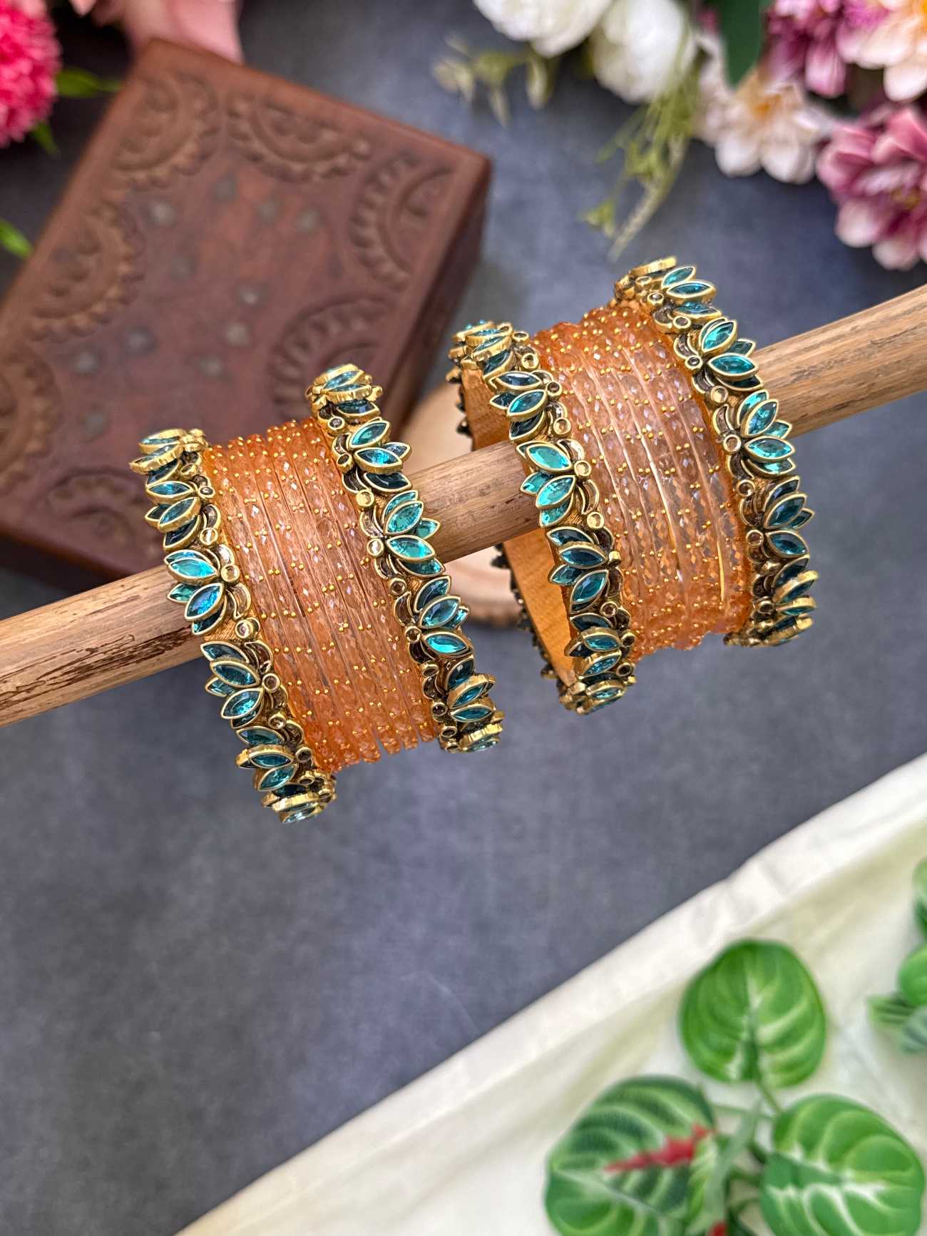 Lotus Sky Blue bangles with Peach Glass Bangles – BC515