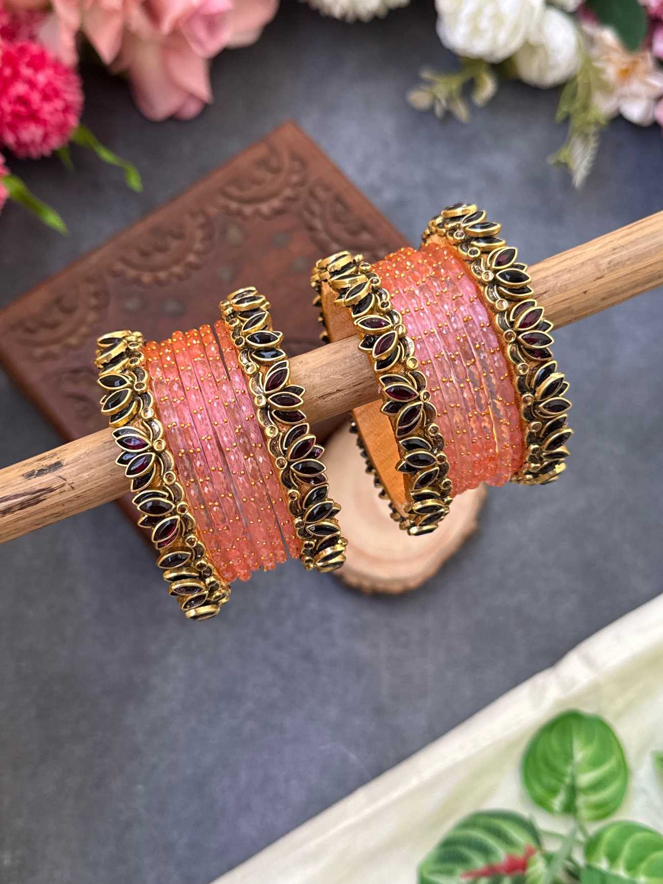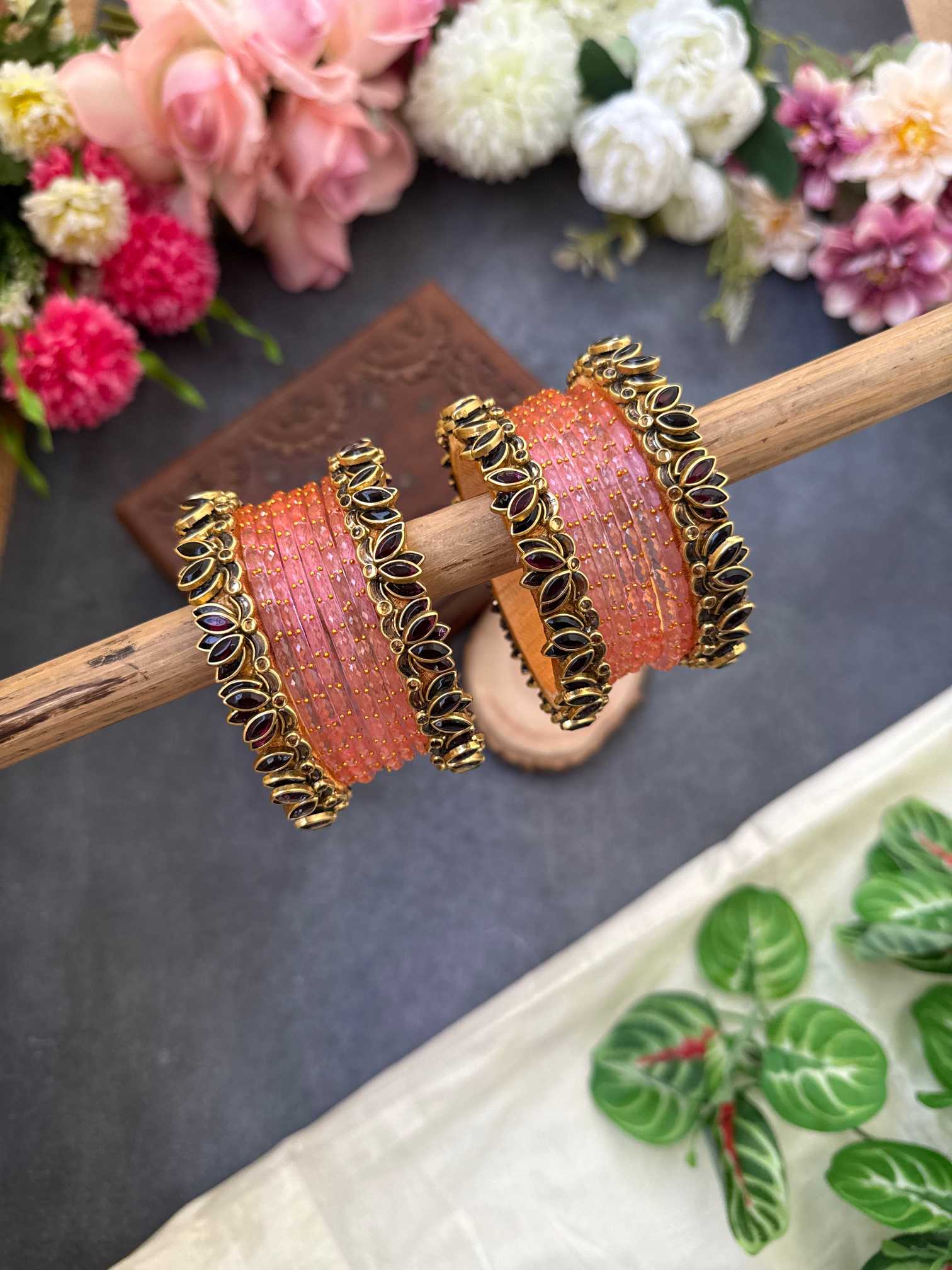 Lotus Wine bangles with Baby Pink Glass Bangles – BC478