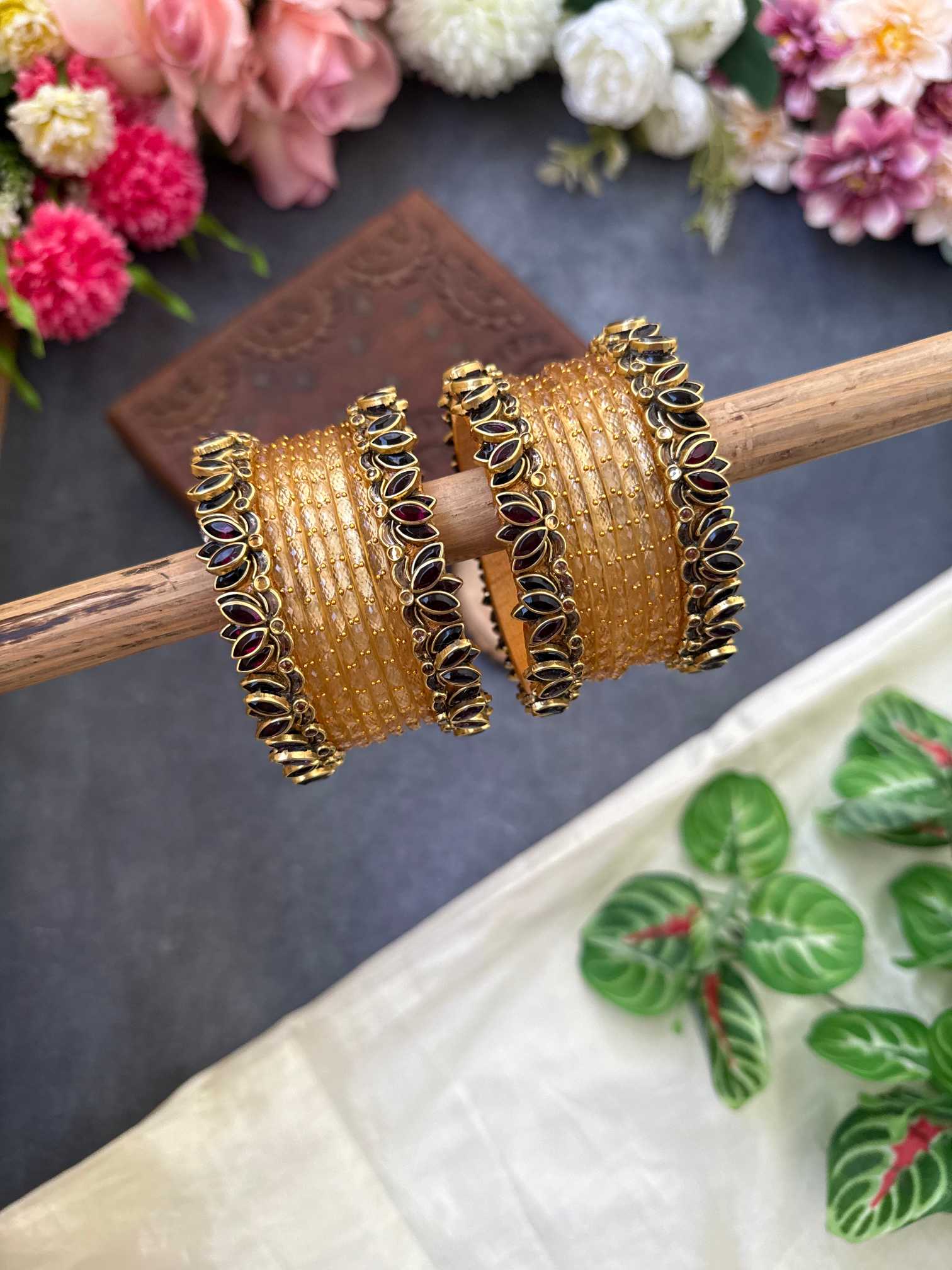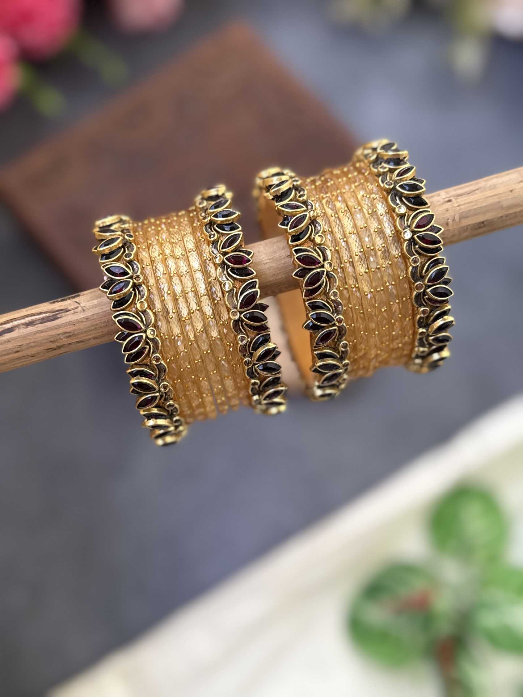 Lotus Wine bangles with Gold Glass Bangles – BC476