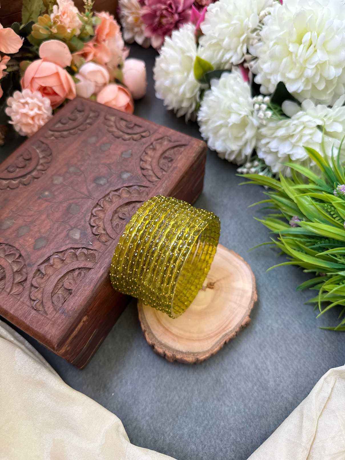 Rain Drop Glass Bangle - Olive Green – GB41