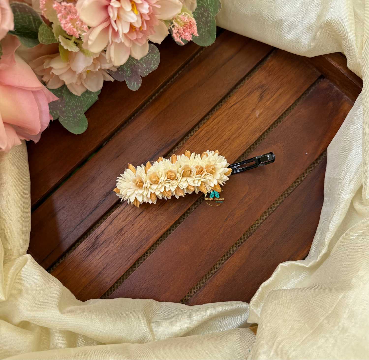 Real Look like White with Gold Mottu – Jasmine Centre Clip
