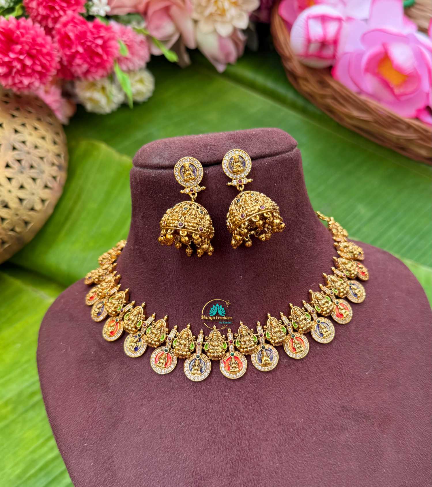 Taruni – Lakshmi Bottu Antique Gold Necklace with Nakshi Jumukha– Hand painted collections